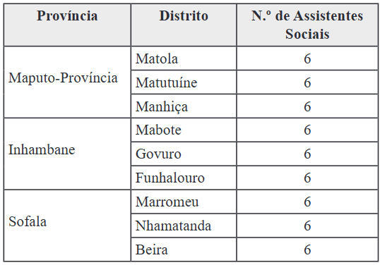 O Governo de Mocambique (GdM), atraves do Ministerio do Trabalho, Género, e Acção Social (MTGAS) recebeu um donativo da Associação Internacional para o Desenvolvimento (IDA) do Banco Mundial para suportar a implementação do Projecto de Capacitação para Melhorar a Resposta à Violência Baseada no Género (VBG) e pretende aplicar parte dos recursos para a contratação de Assistentes Sociais.